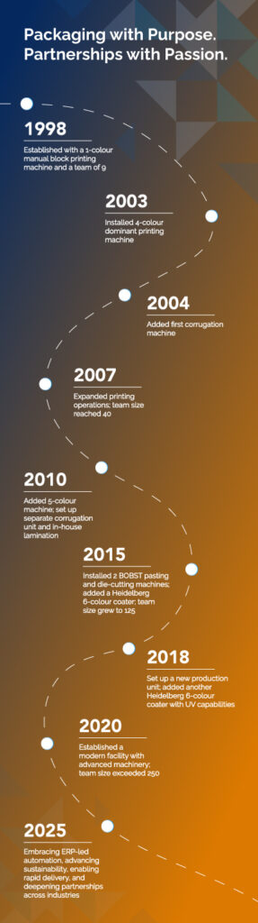 At Khosla Printers, we believe packaging is more than protection — it’s a powerful medium to communicate, captivate, and connect. Since 1998, we’ve combined craftsmanship, advanced technology, and innovation to deliver print and packaging solutions that reflect both quality and creativity. Trusted by top brands across industries, we take pride in being a reliable partner from concept to creation. As we move forward, our commitment remains clear — to provide sustainable, customer-centric solutions that leave a lasting impression. Together, let’s build packaging that speaks volumes.