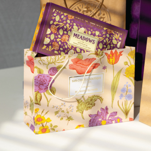 • Luxury Gift Bags: Premium laminated paper with custom branding options.